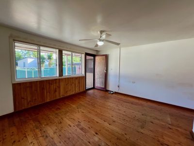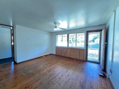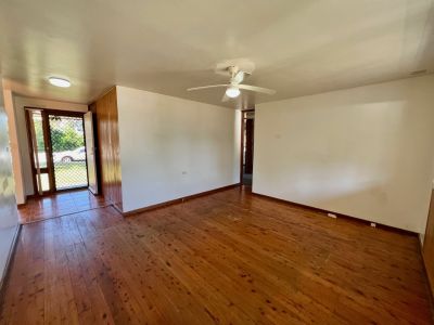 - Lounge room with floorboards, ceiling fan & access to the back verandah