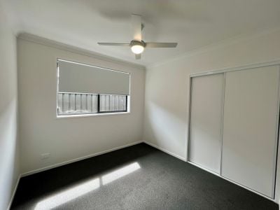 - Three bedrooms with built-in wardrobes, ceiling fans, and carpeted floors